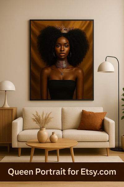 Black Royalty Afrocentric Wall Art | Melanin Queen Print | African American Poster | Digital Download | Luxury Brown Home Decor