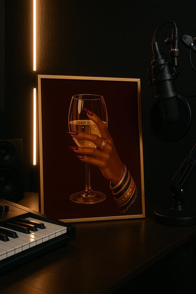 Aesthetic Vanity Wall Art | Glam Black Girl Art Print | Studio Vibe Decor | Champagne Hand Illustration | Luxury Afrocentric Printable Art