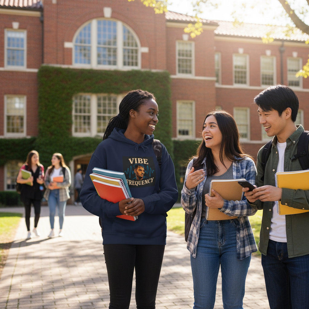 Soft, roomy, and quietly stylish — this hoodie wears like an easy companion. The front square artwork reads “Vibe Frequency” with a warm-toned portrait and pulsing waveform, giving the piece a low-key retro-cool energy. It’s the kind of layer you pull on for late-night walks, coffee runs, or when you want your outfit to hum with mood without shouting. The kangaroo pocket keeps hands warm; the double-lined hood and color-matched drawcord add subtle durability and polish. Breathable and resilient from its cotton-poly blend, it keeps its shape and print through repeated wear. Slip it on and feel a gentle, familiar vibe — relaxed, tuned-in, and ready for whatever the day brings. Product features - Cozy 50/50 cotton-poly fabric for warmth and durability - Kangaroo pouch pocket to keep hands warm - Double-lined hood with color-matched drawstring - No side seams (tubular knit) for a smooth, attractive look - DTG/DTF printed artwork with optional embroidery placement Care instructions - Tumble dry: medium - Iron, steam or dry: low heat - Do not dryclean - Machine wash: cold (max 30C or 90F) - Non-chlorine: bleach as needed