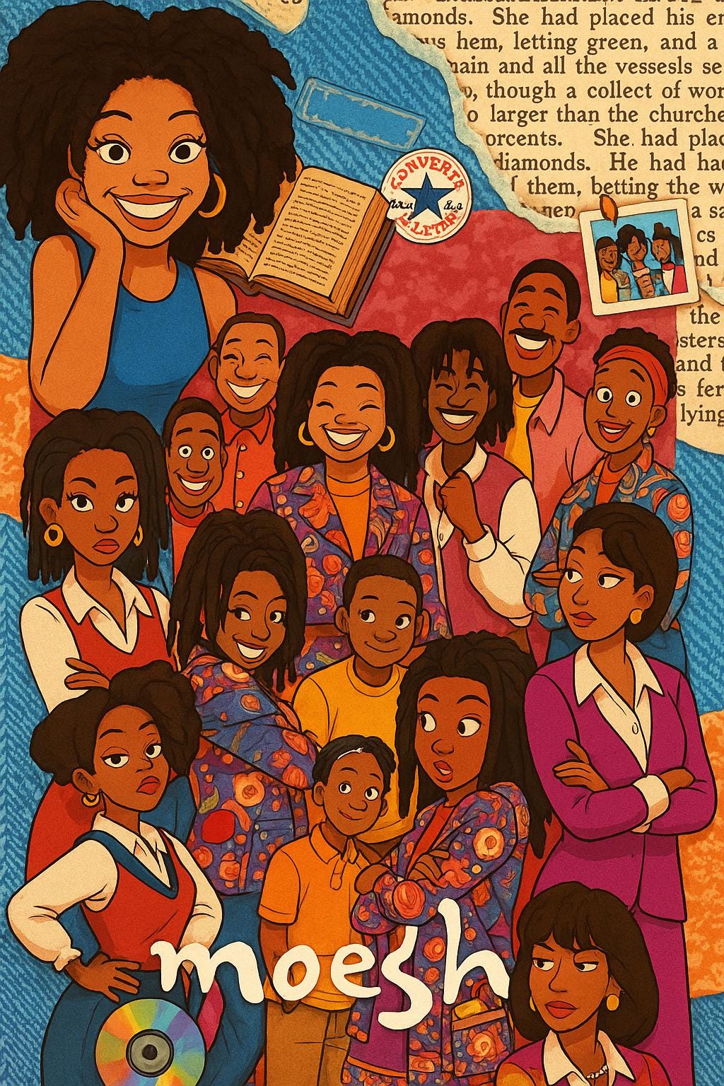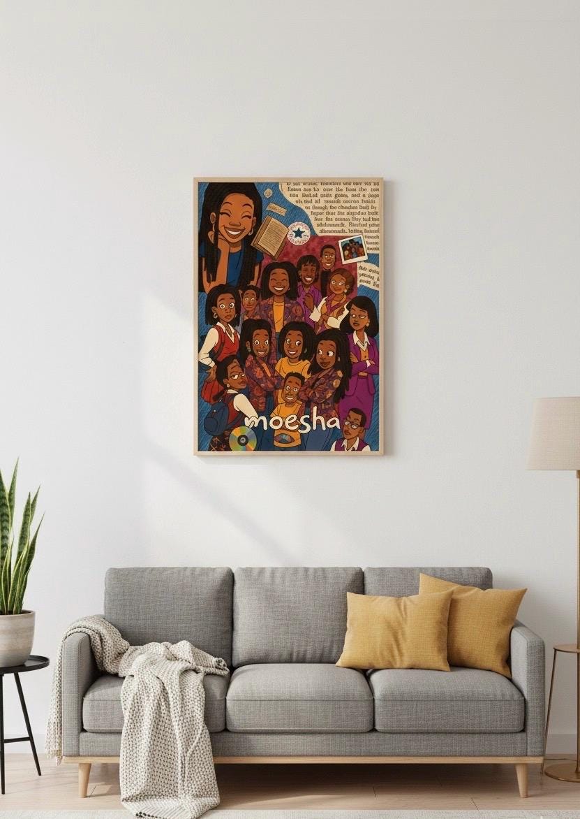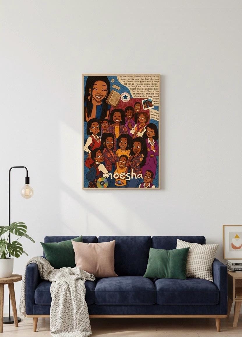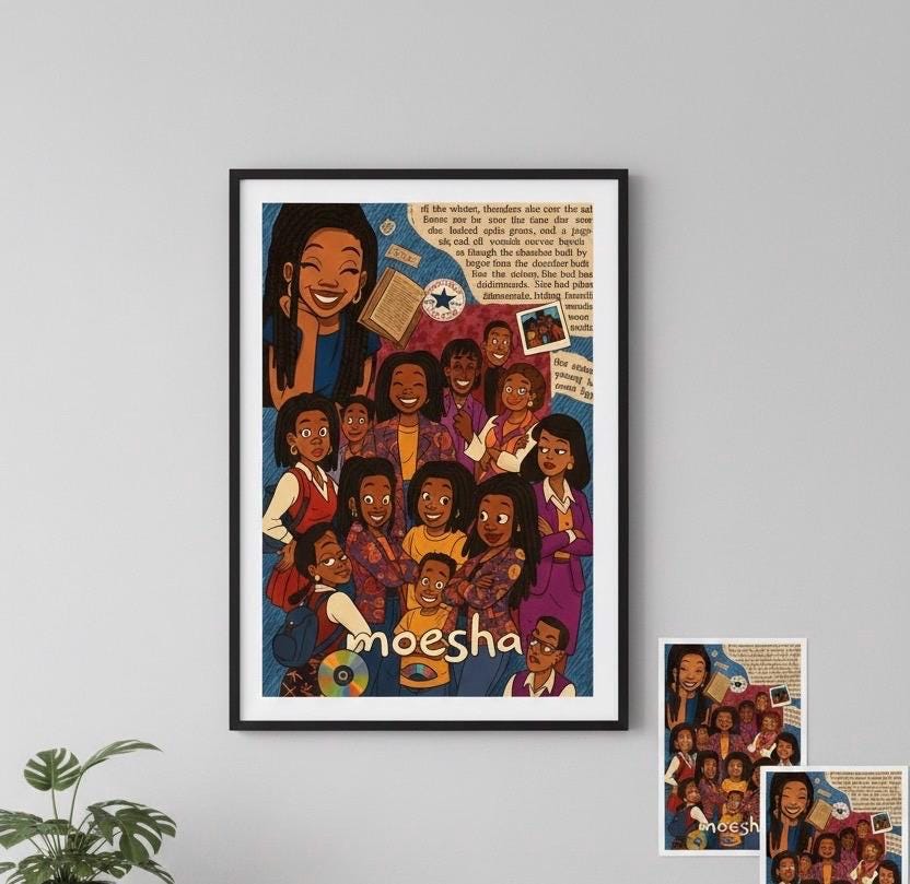 Bring back the nostalgia of 90s Black television culture with this animated Moesha-style collage artwork! Perfect for bedrooms, dorms, living rooms, and anyone who grew up inspired by classic sitcom energy, vibrant colors, and bold Black girl aesthetics.