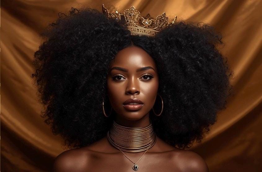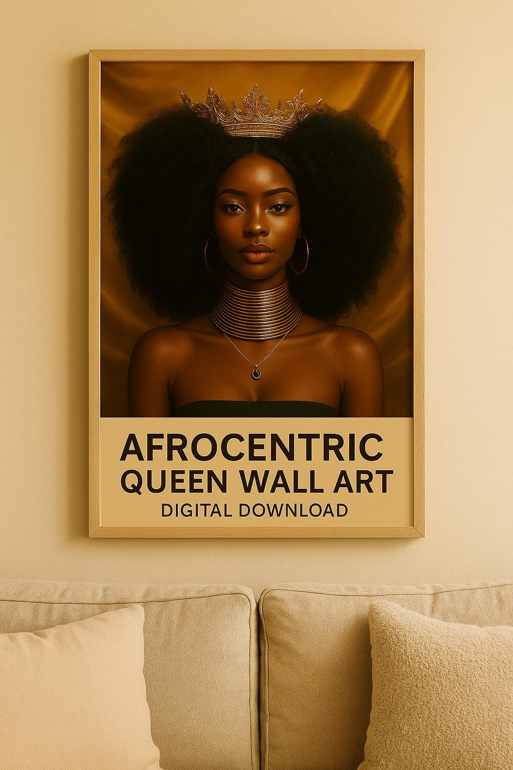 Afrocentric Black Queen Wall Art | Melanin Royalty Portrait | African American Woman Print | Gold Glam Home Decor | Digital Download
