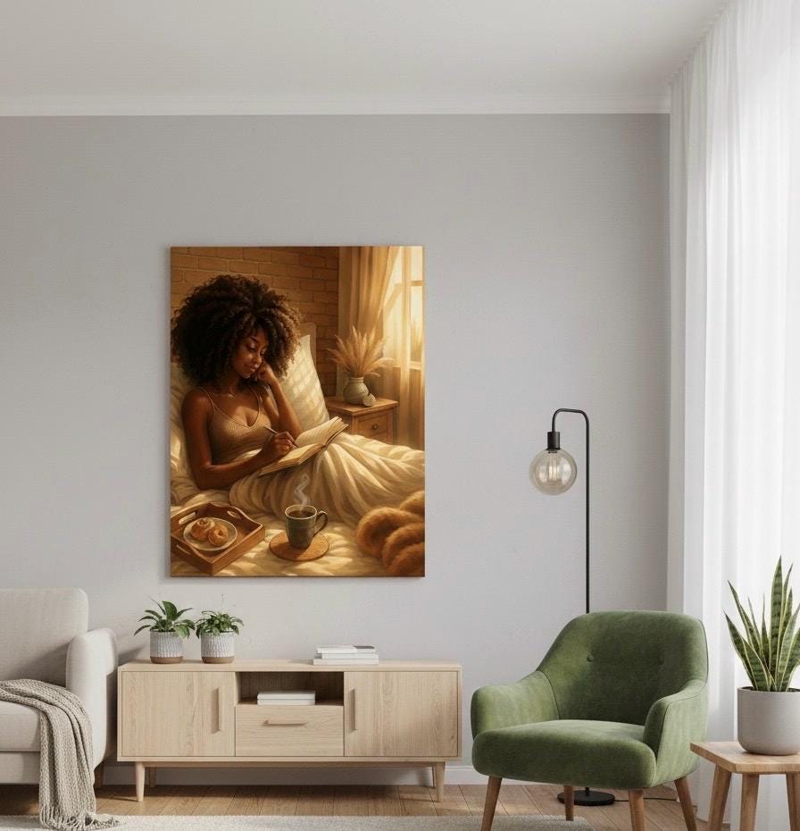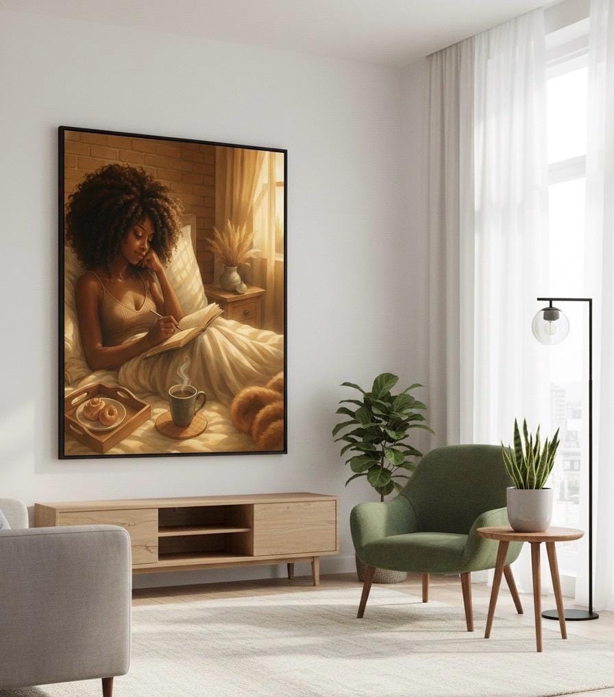 Bring warmth, creativity, and soft-life energy into your space with this stunning Afrocentric journaling artwork.