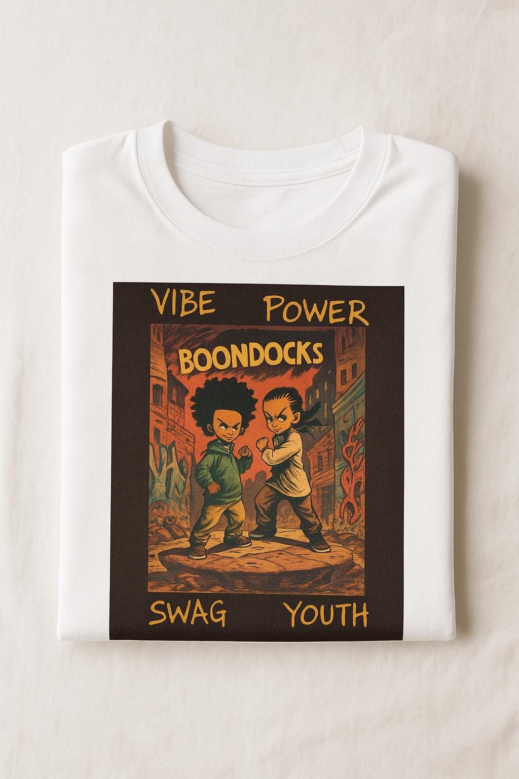 Boondocks Streetwear Graphic Tee | Retro Comic Poster Shirt | Urban Hip Hop Art T-Shirt | Afro Anime Style Tee | Vintage Cartoon Shirt