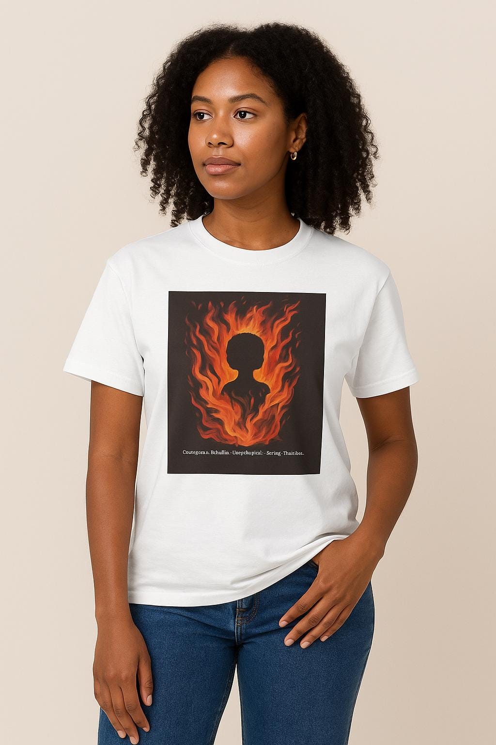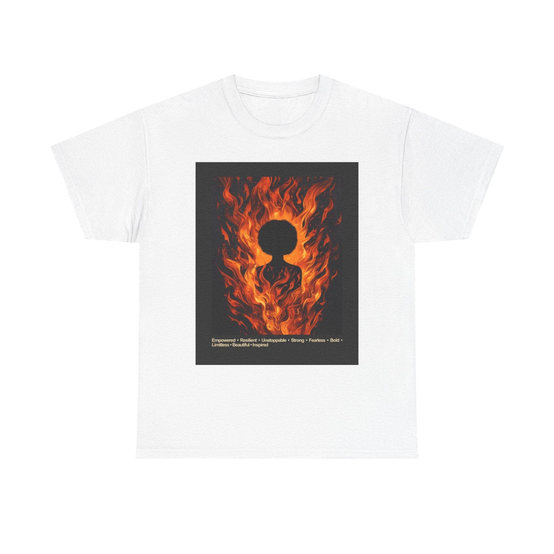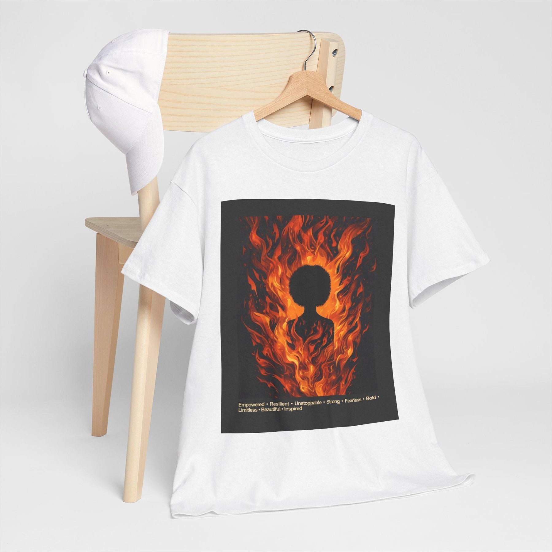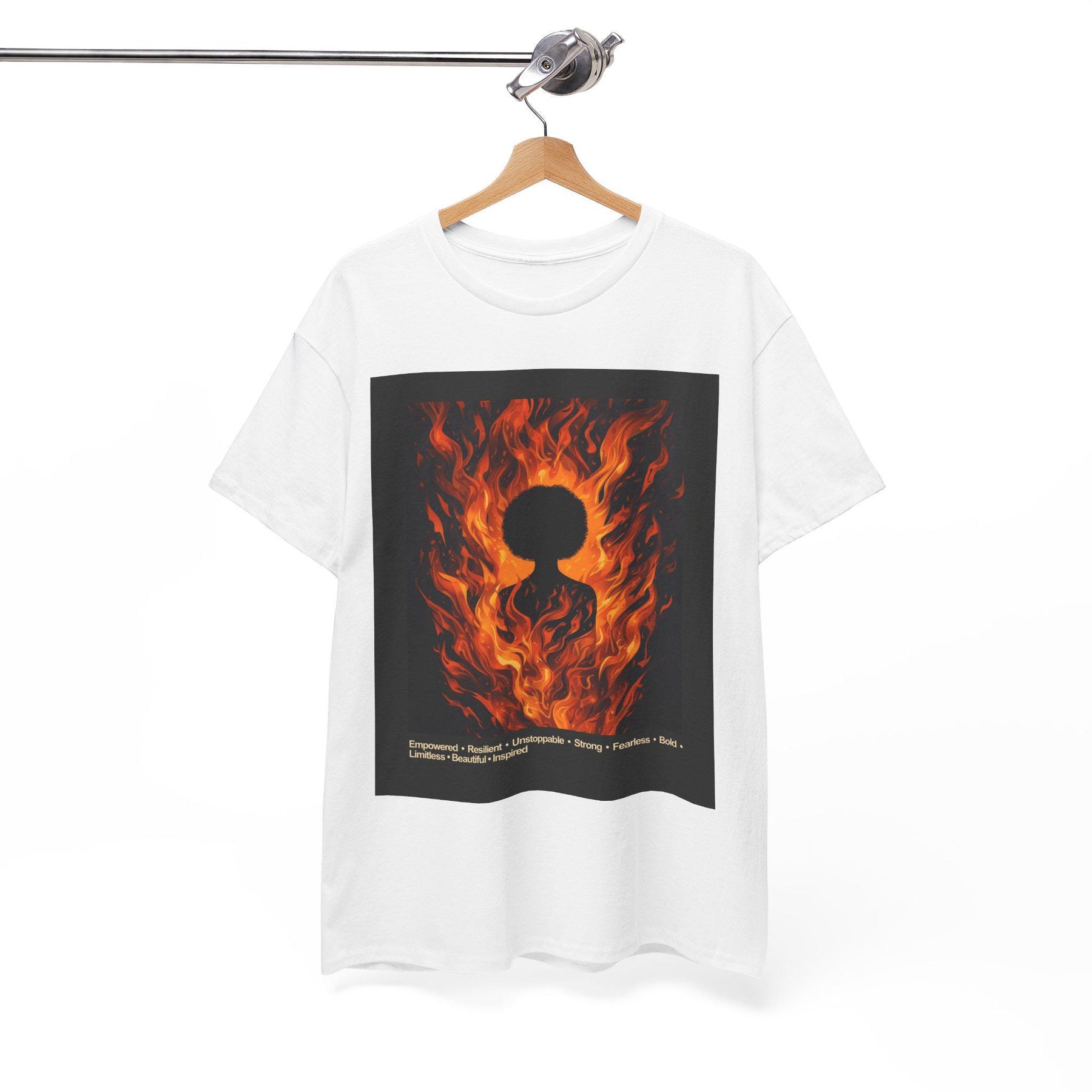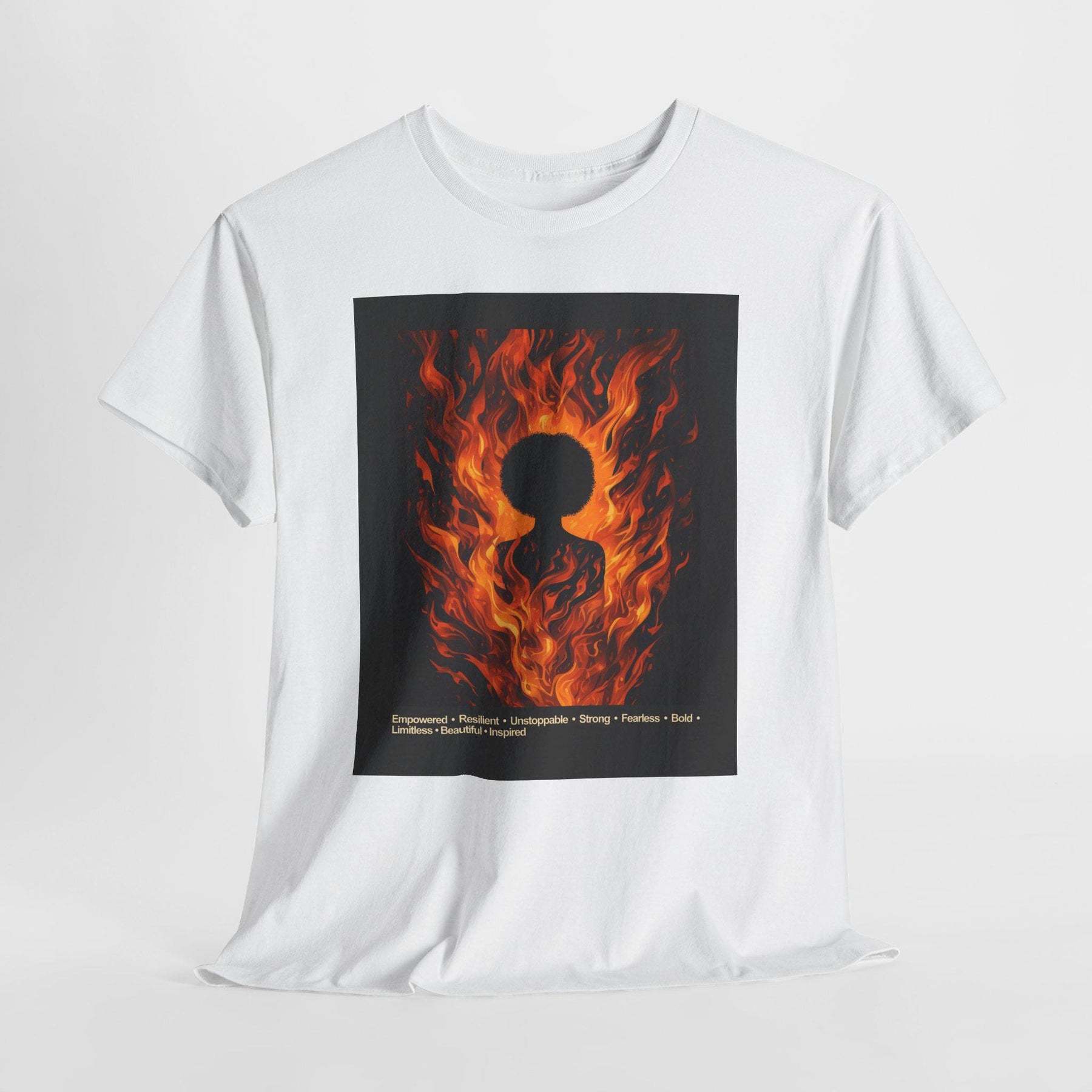 Forged by Fire Empowerment T-Shirt | Black Woman Strength Tee | Feminine Energy Graphic Shirt | Afrocentric Art Top | Inspirational Quote