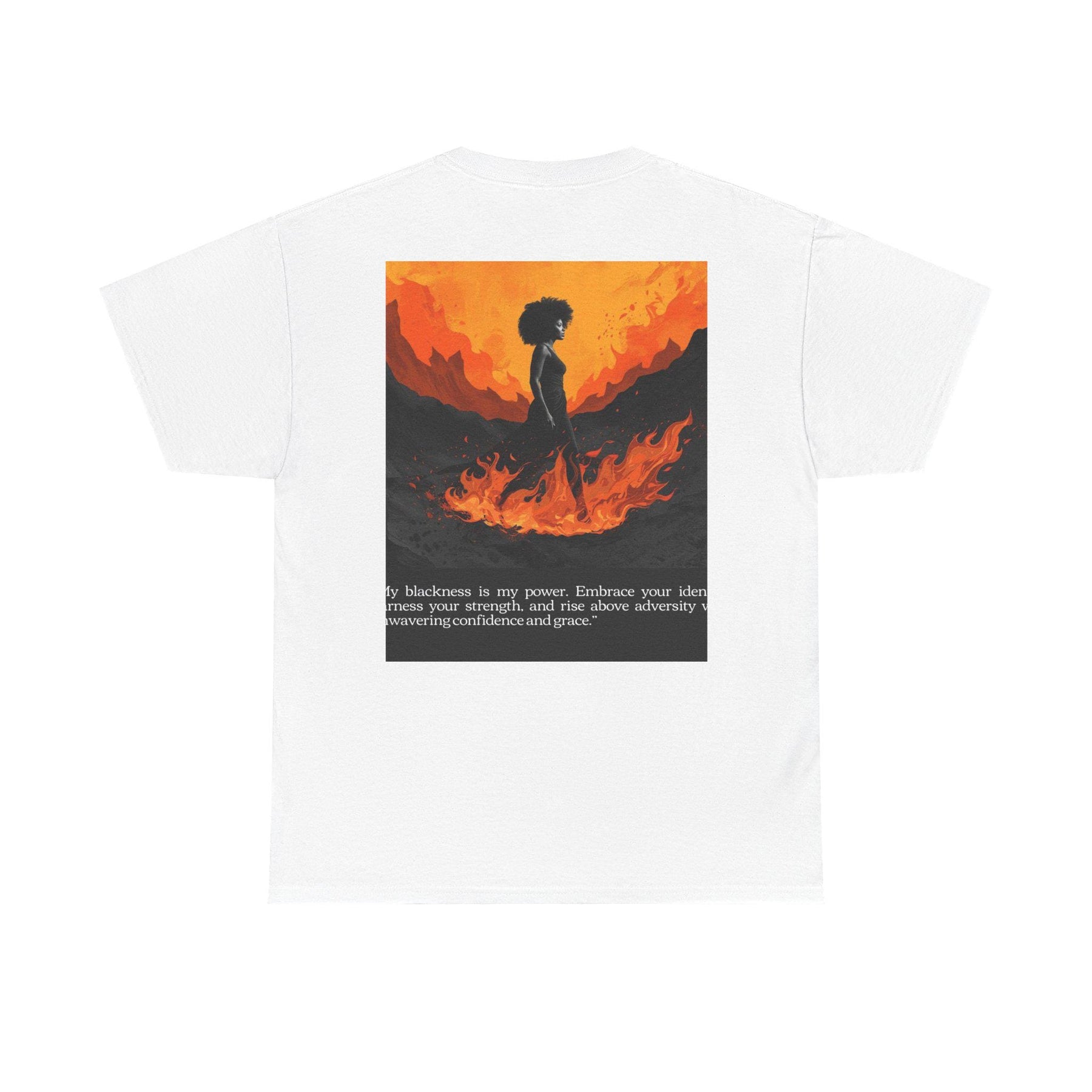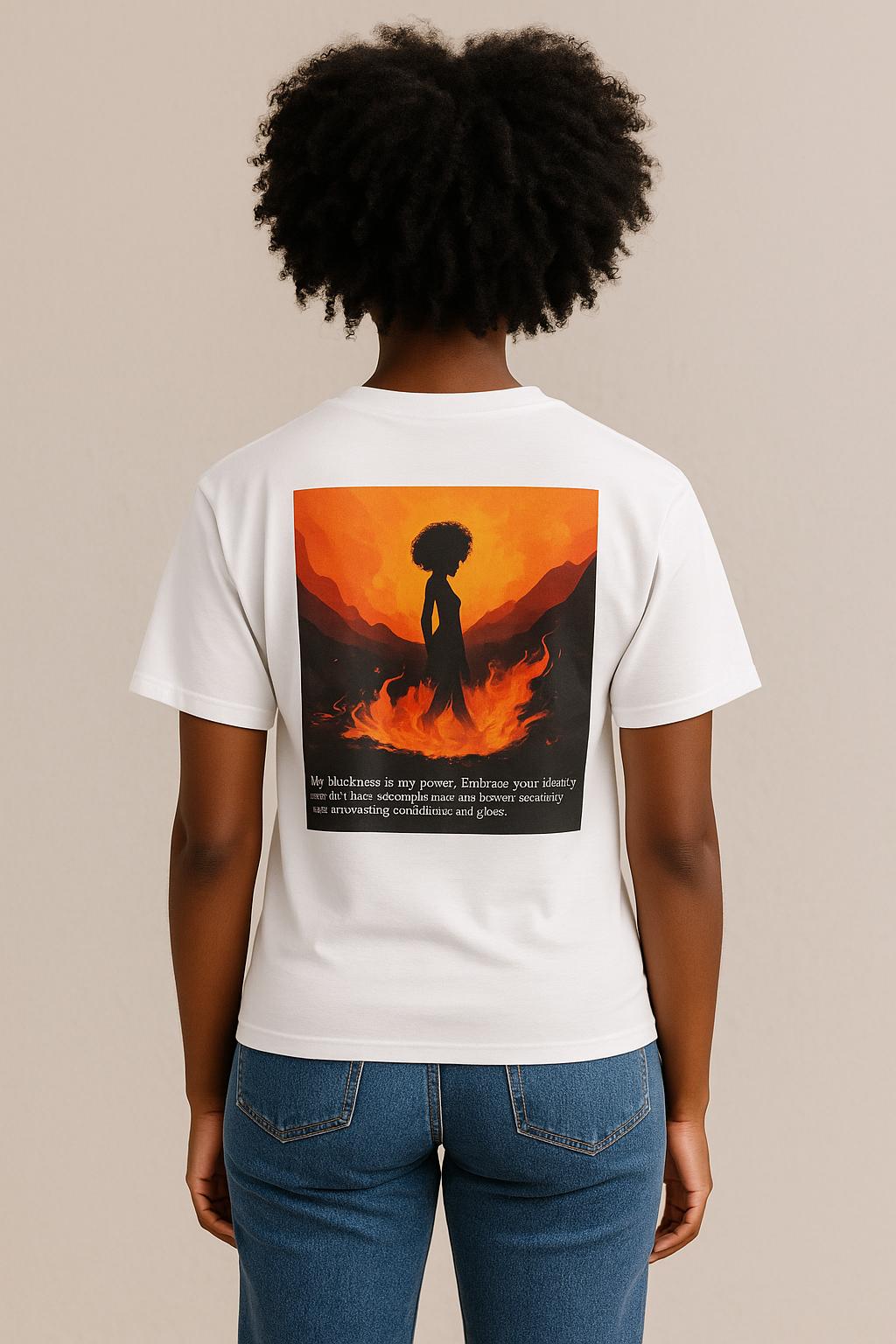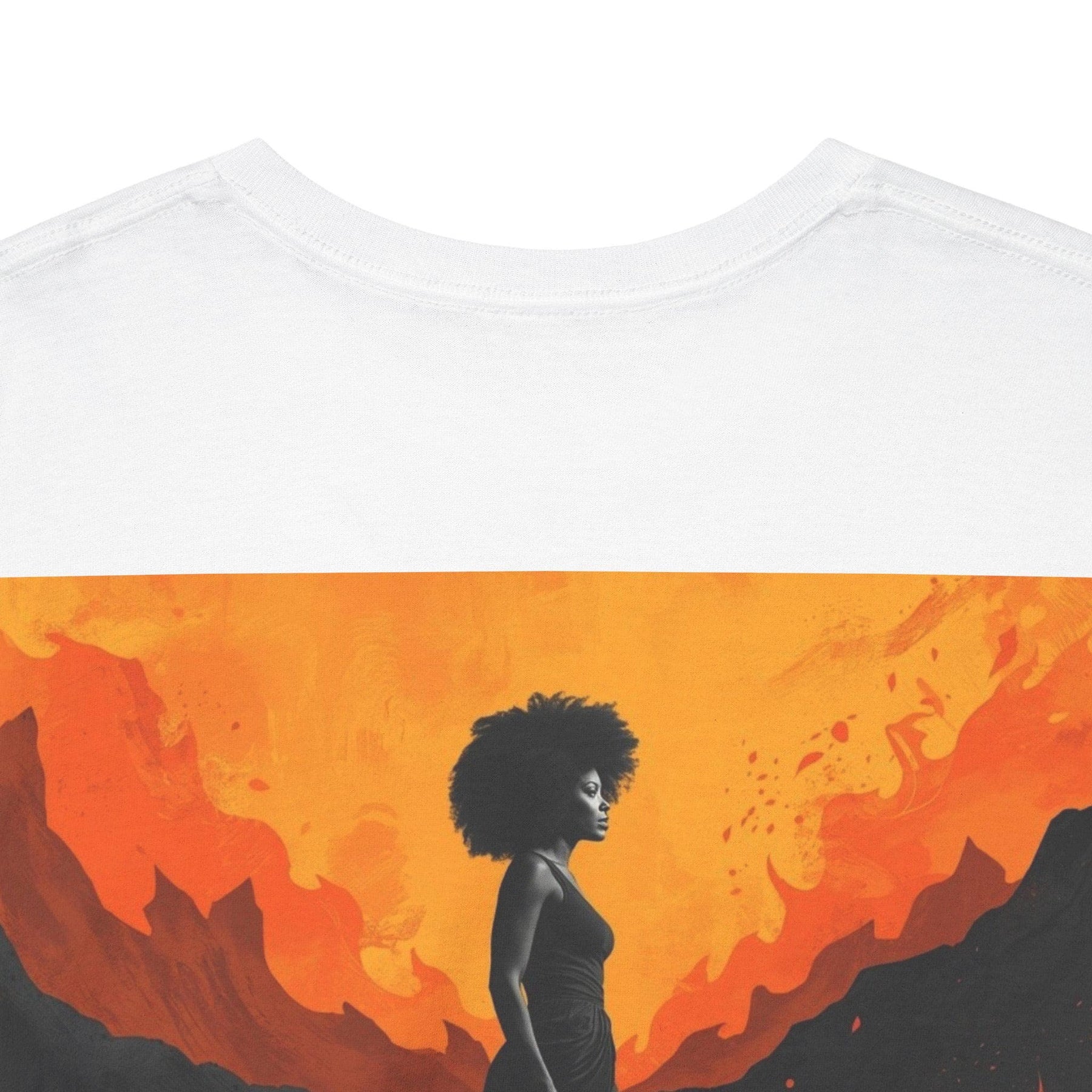 This powerful graphic tee celebrates the strength, beauty, and resilience of Black women. Featuring fiery Afrocentric artwork on the front and a bold empowerment scene on the back, this shirt tells the story of rebirth, identity, and rising above every obstacle.