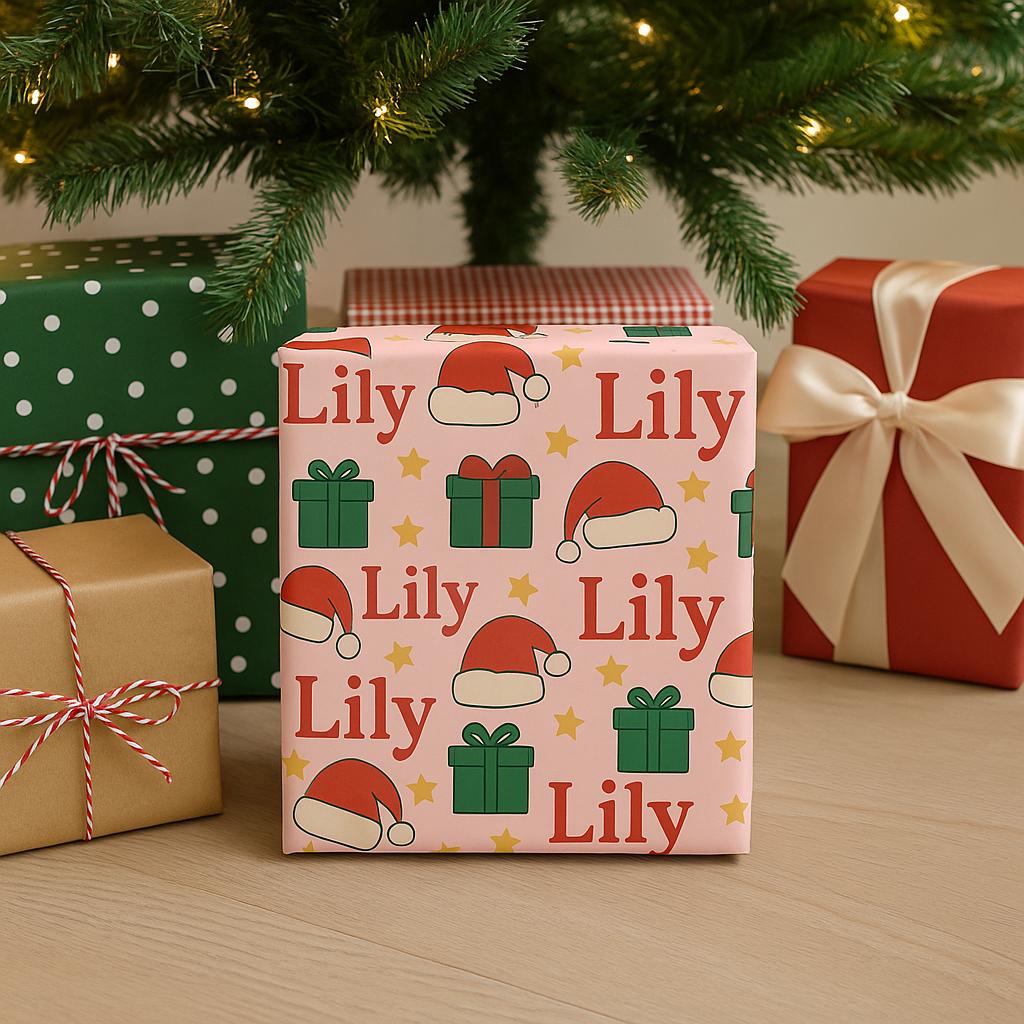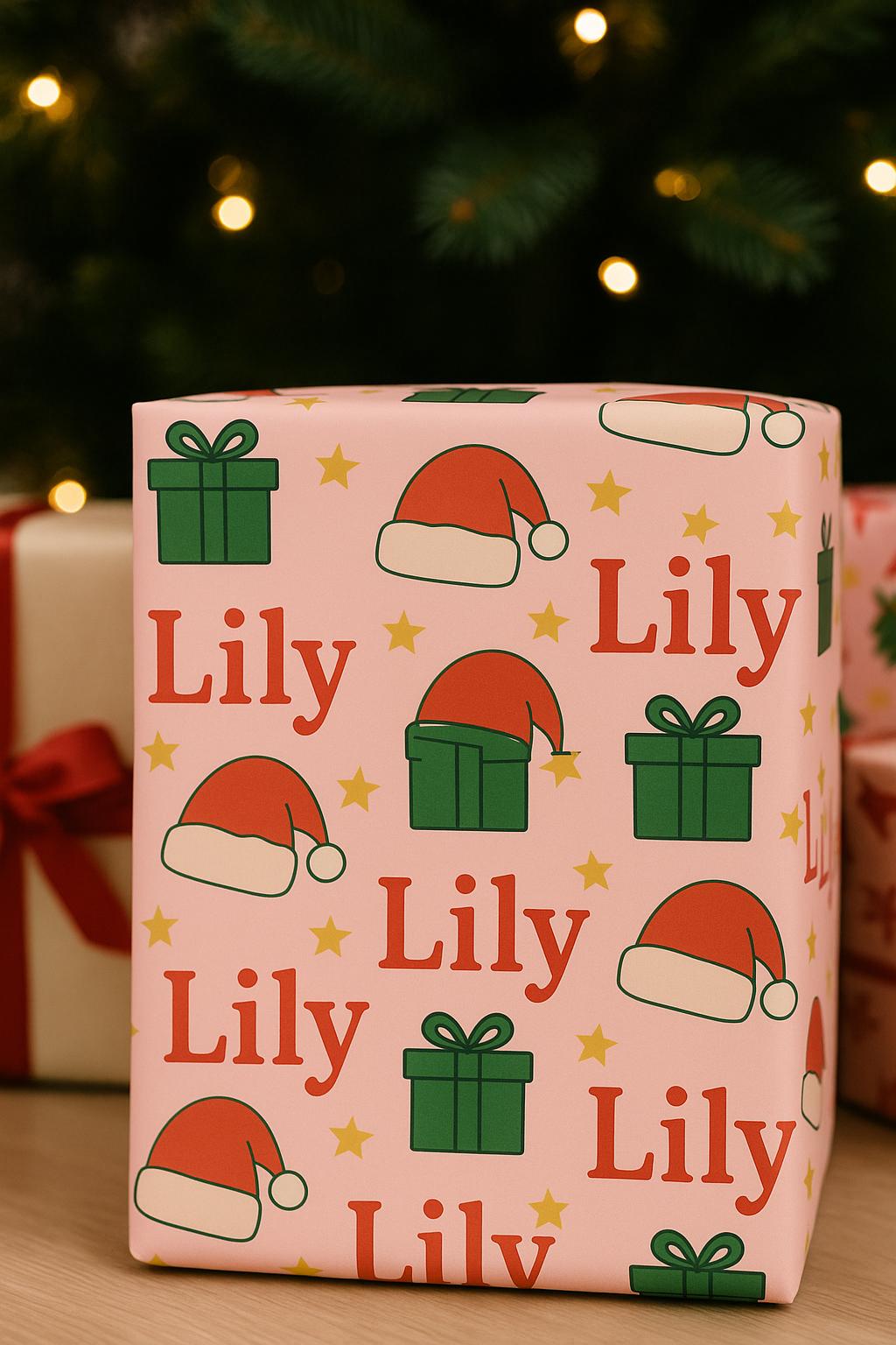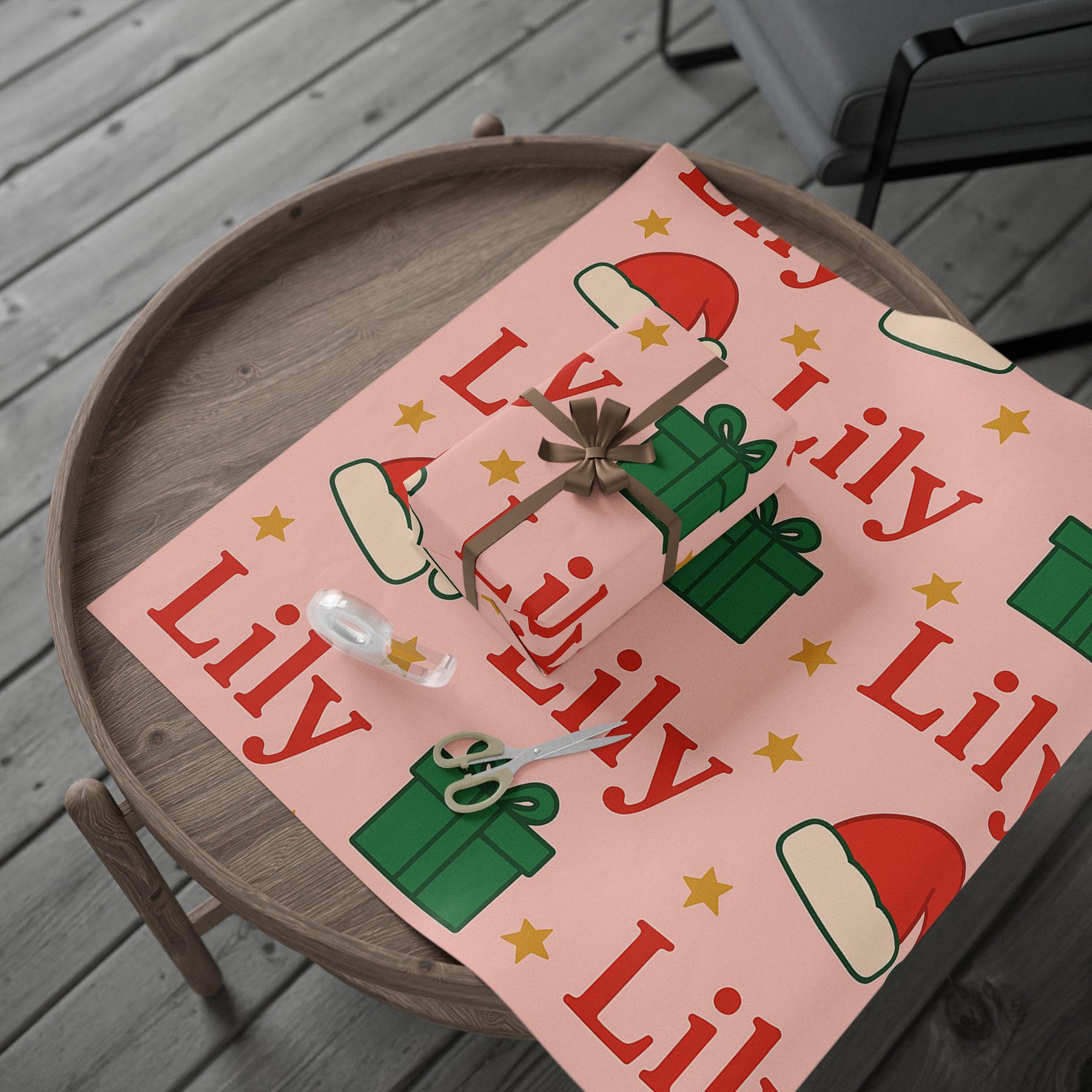 Make every gift feel extra magical this season with our personalized Christmas wrapping paper, customized with any name — just like this example featuring Lily!